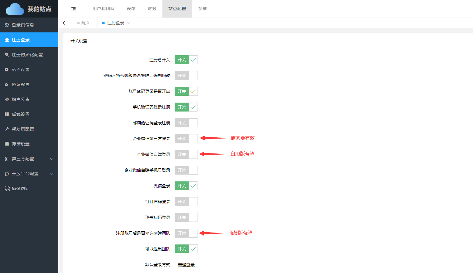 • 微信登录: 开启后可使用账号微信扫码登陆