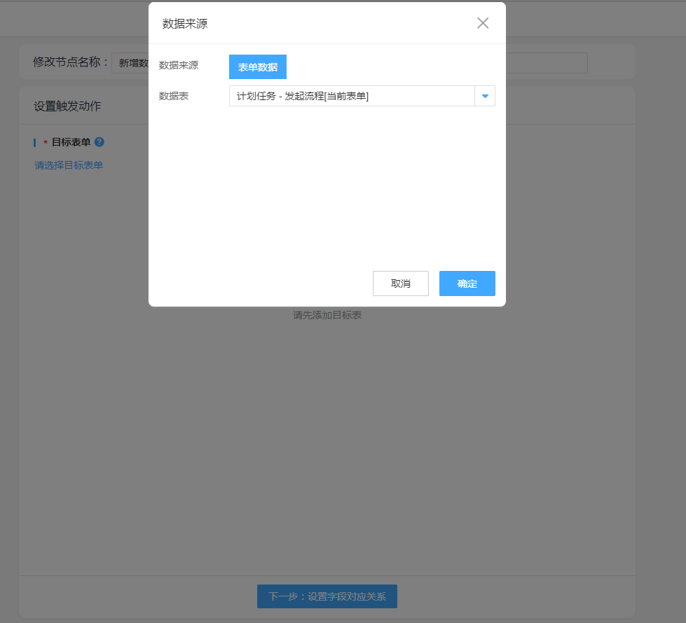 1. 输入数据选择数据源,选择需要进行审核的数据表单