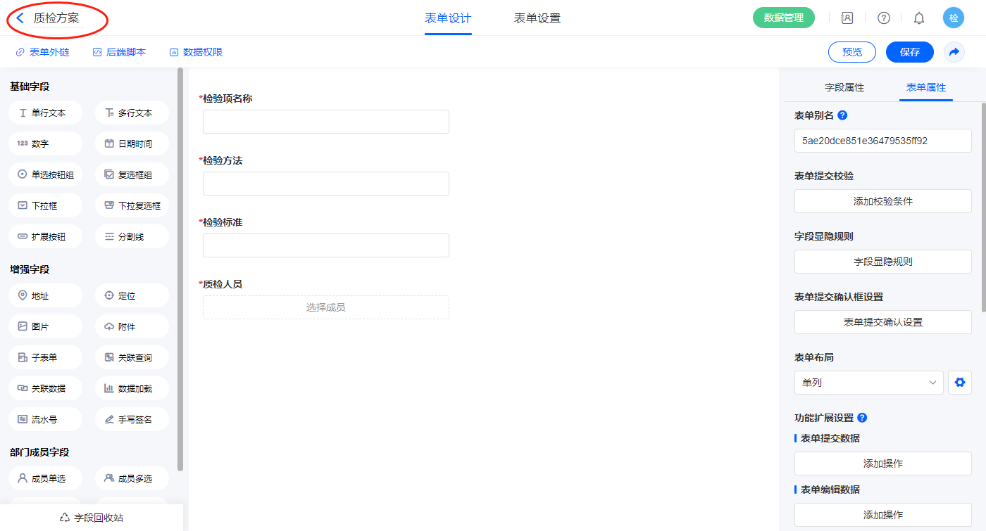 | 规格型号 | 单行文本 | 选择工艺 | 数据加载 |