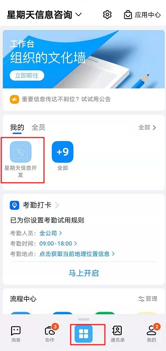 在移动端(Android、IOS)内,可以通过工作台进行访问。