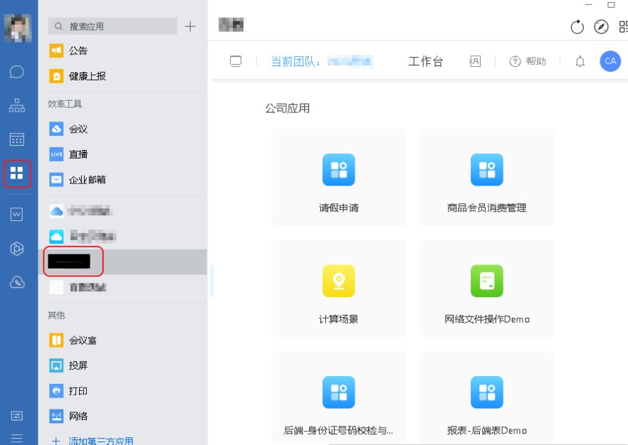 在PC端,企业内成员可以通过直接在工作台->坤灵云应用进行访问。