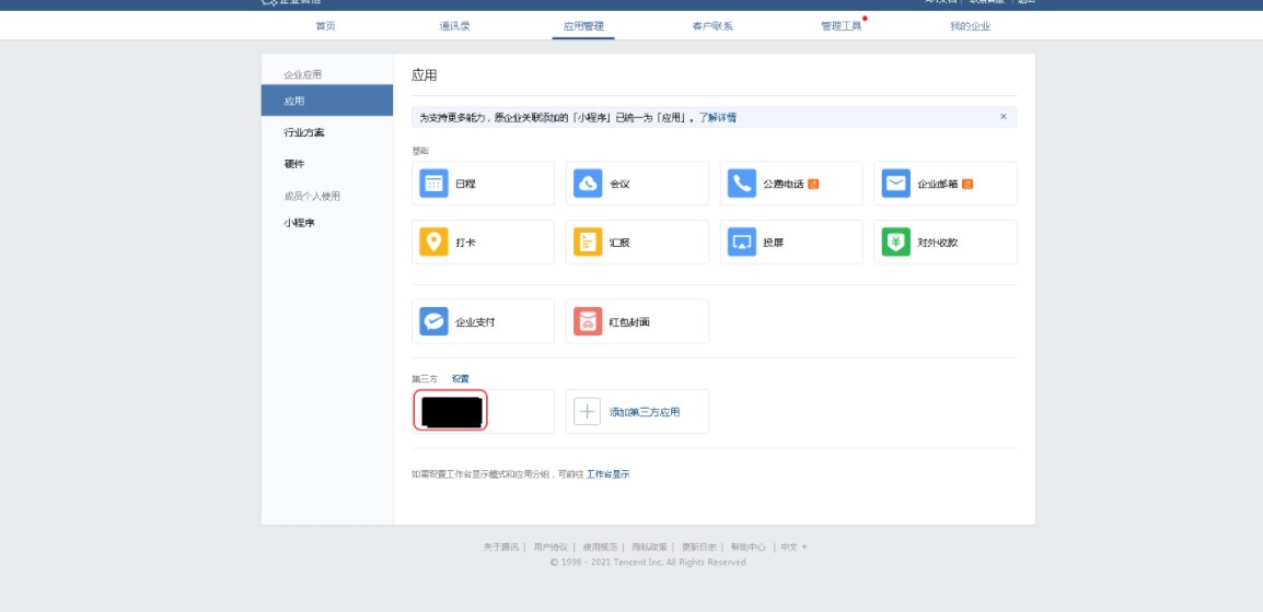 此外,平台还提供了直接在企业微信应用内直接访问平台的能力。