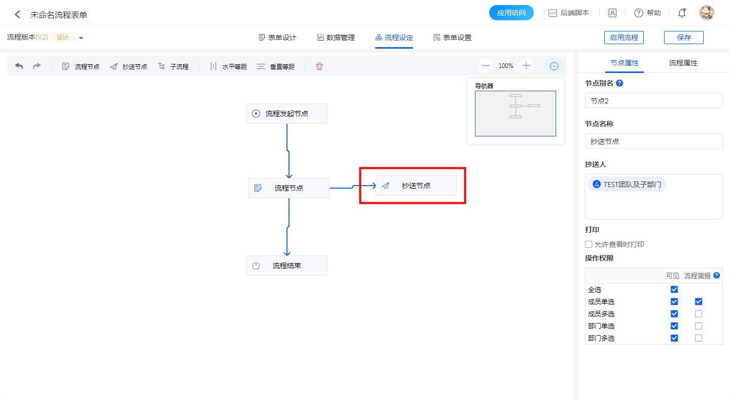 步骤:【点击某一节点】——【节点属性】——【基础属性】——【启用抄送】,添加抄送人。