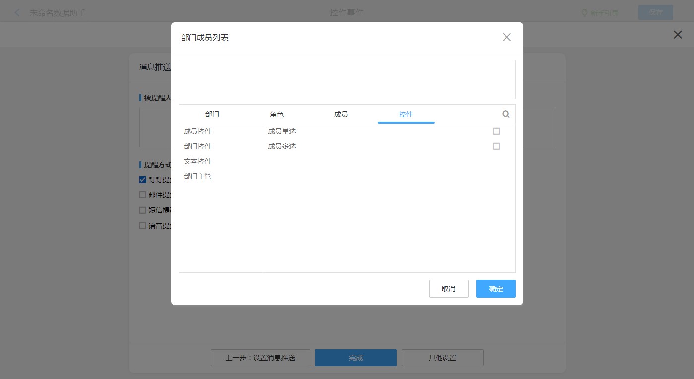 | 控件字段 | 文本控件、成员控件、部门控件、部门主管 |